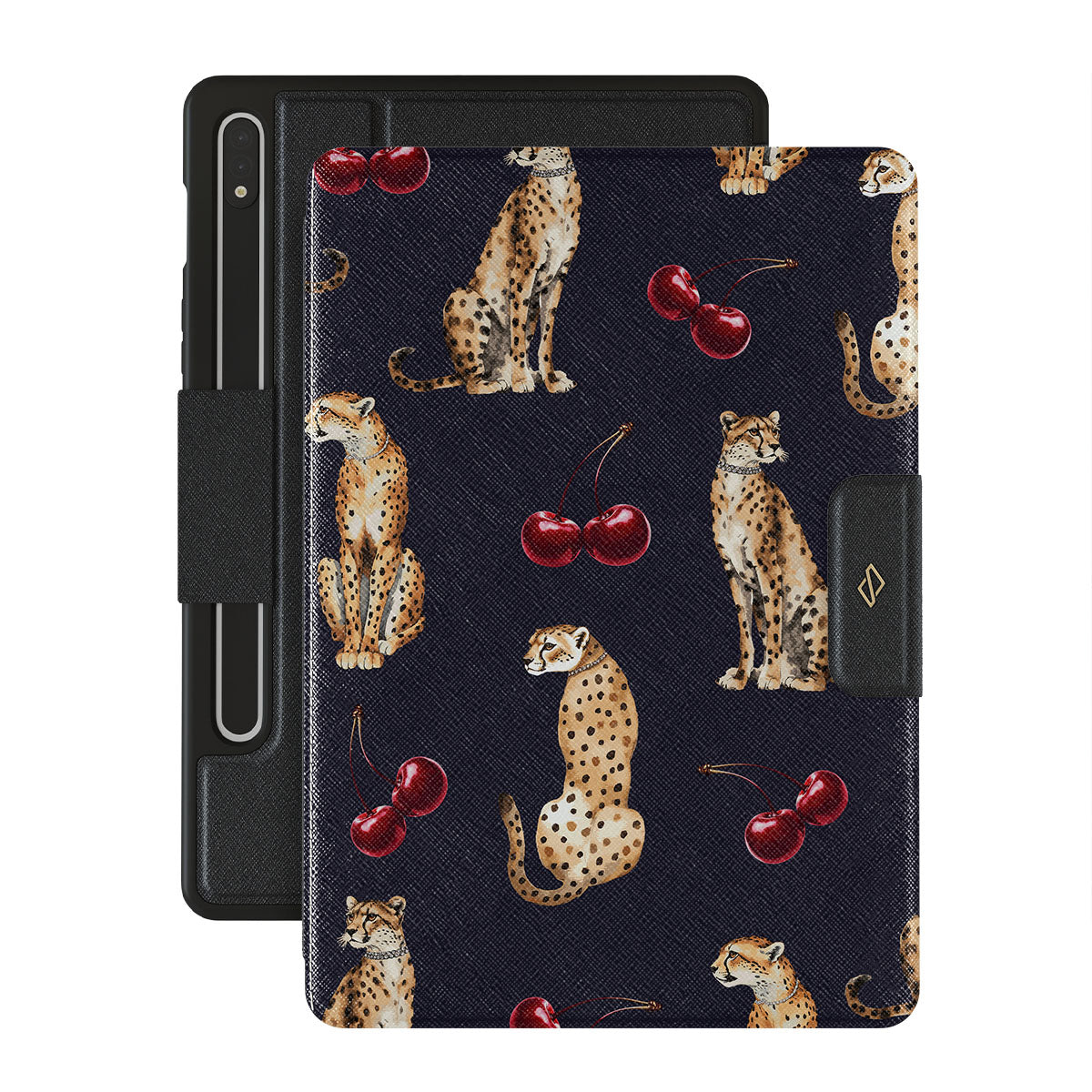 Este diseño presenta: estampado de leopardo, leopardos, cerezas.