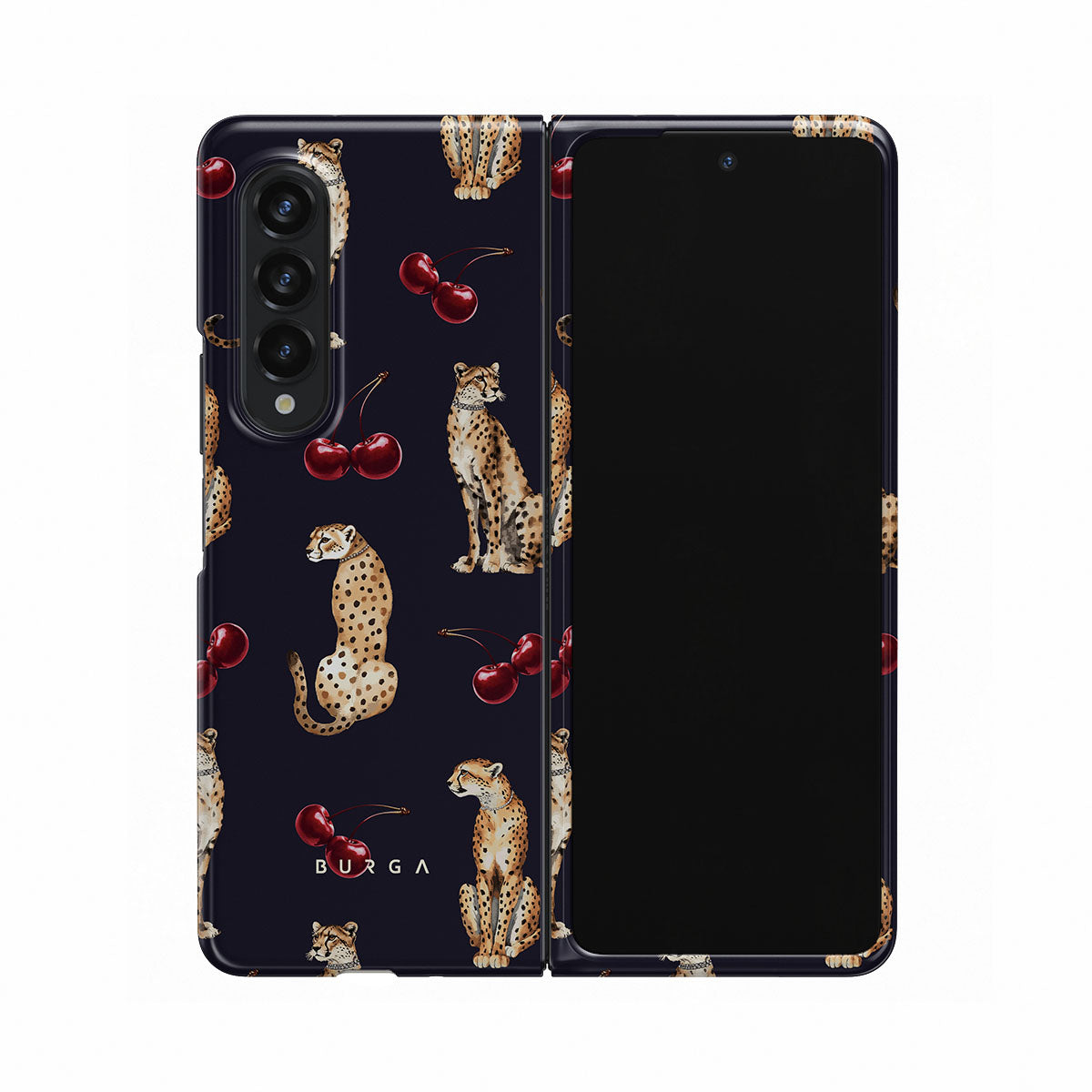 Este diseño presenta: estampado de leopardo, leopardos, cerezas.