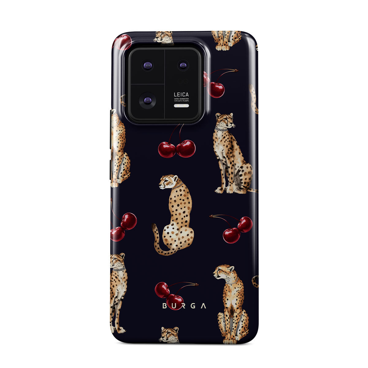 Este diseño presenta: estampado de leopardo, leopardos, cerezas.