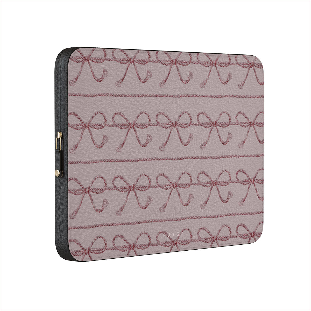 En este diseño: lazos rosas, fondo rosa, cuerdas, estampado divertido