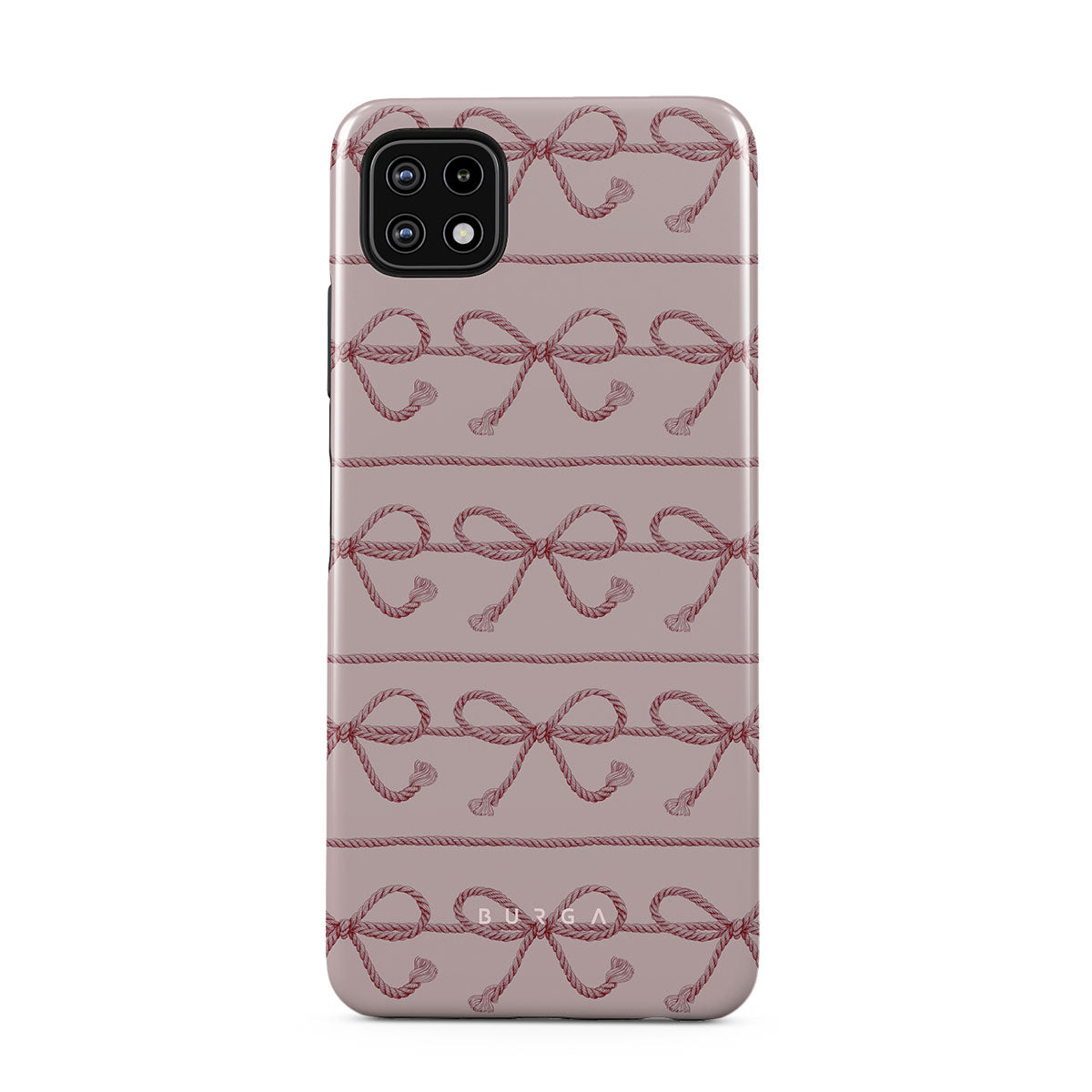 En este diseño: lazos rosas, fondo rosa, cuerdas, estampado divertido