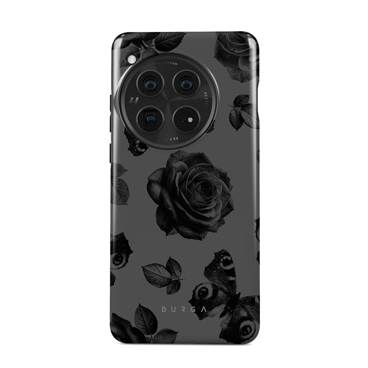 En este diseño: rosas negras, flores góticas, sombras tenebrosas.