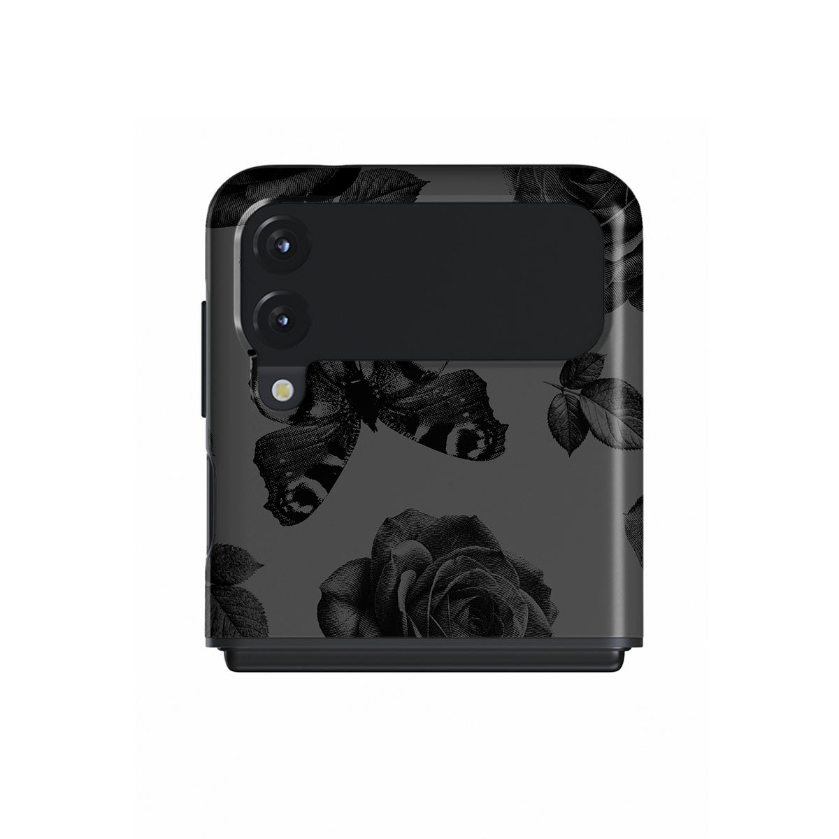 En este diseño: rosas negras, flores góticas, sombras tenebrosas.