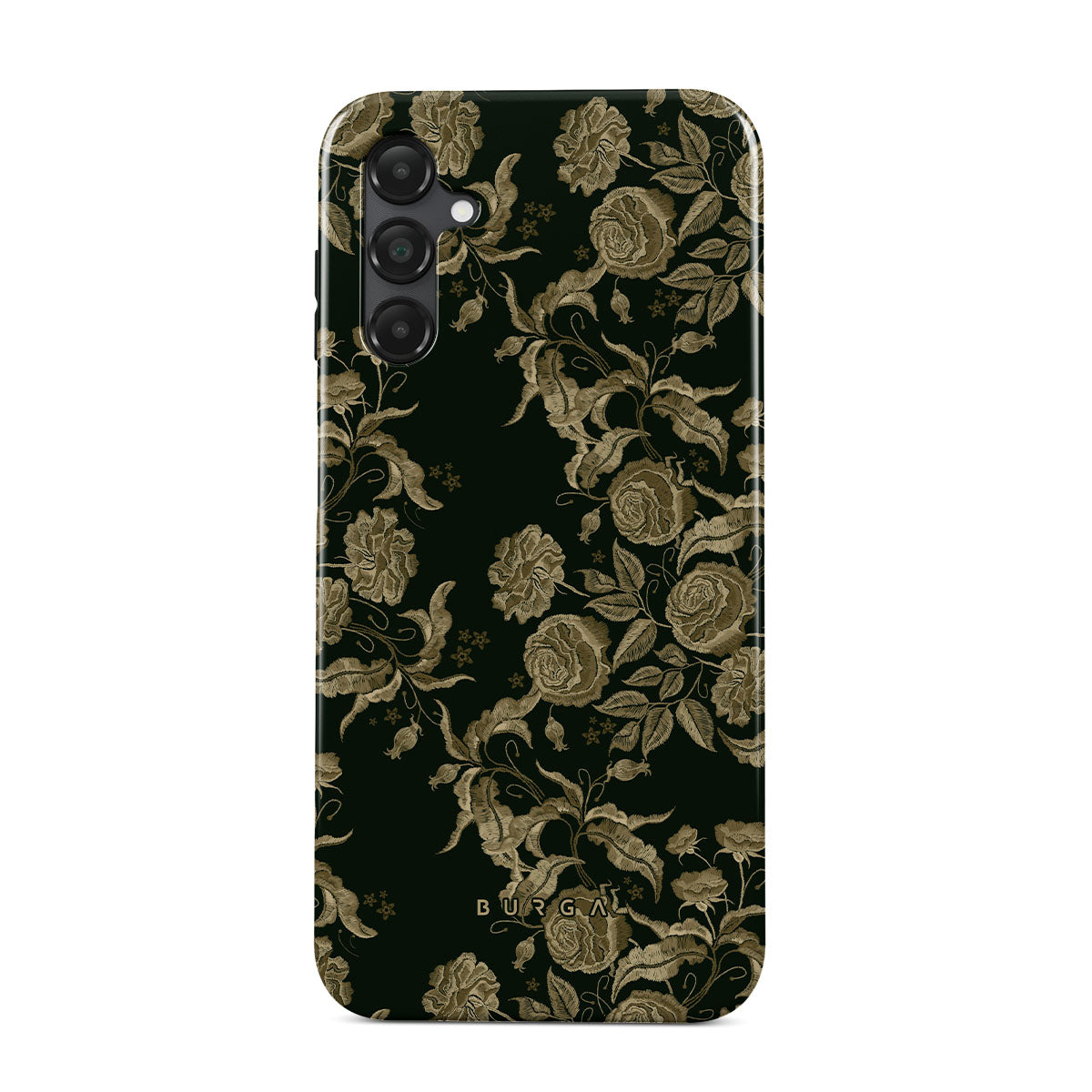 En este diseño: rosas vintage, follaje dorado, tonos verde oscuro.