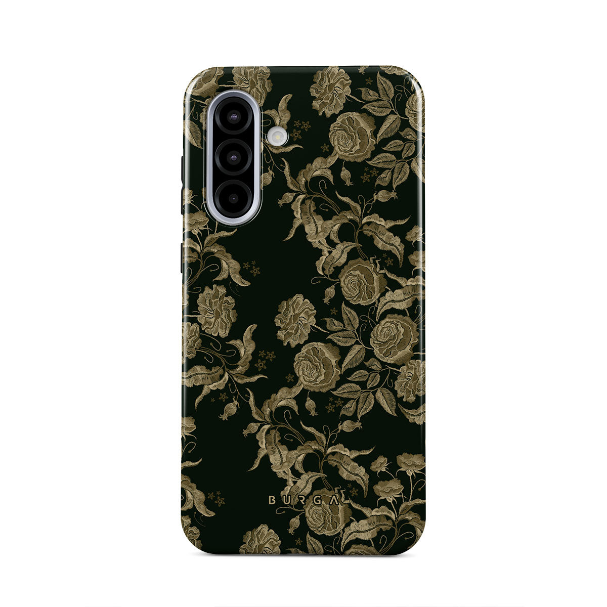 En este diseño: rosas vintage, follaje dorado, tonos verde oscuro.