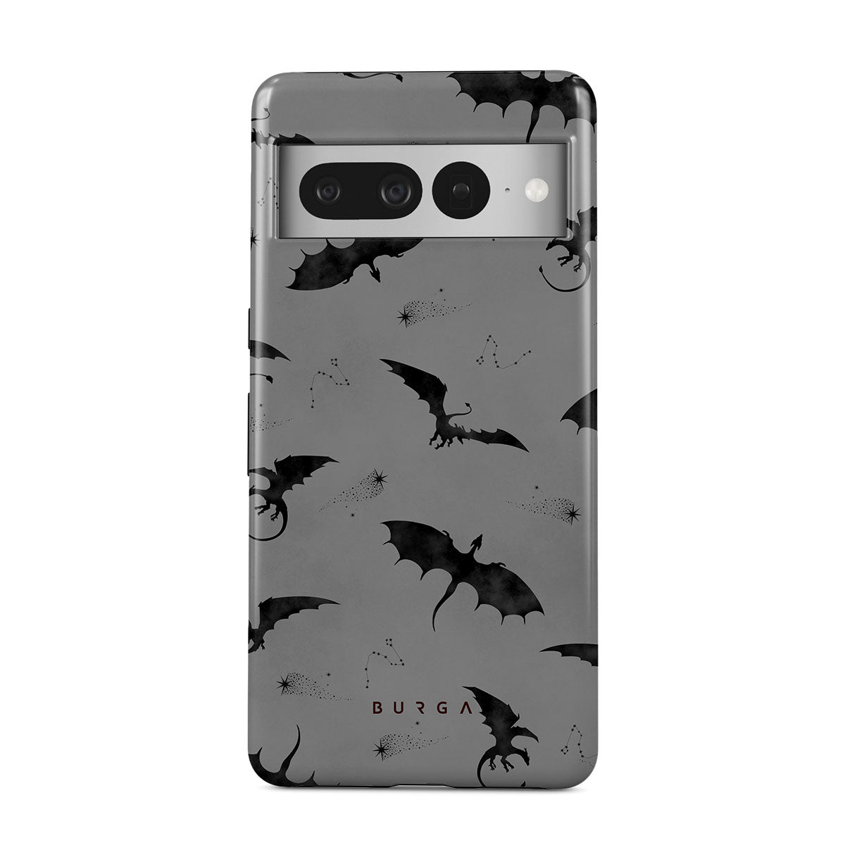 En este diseño: murciélagos, dragones, cielo gris, cielos nocturnos, criaturas siniestras.