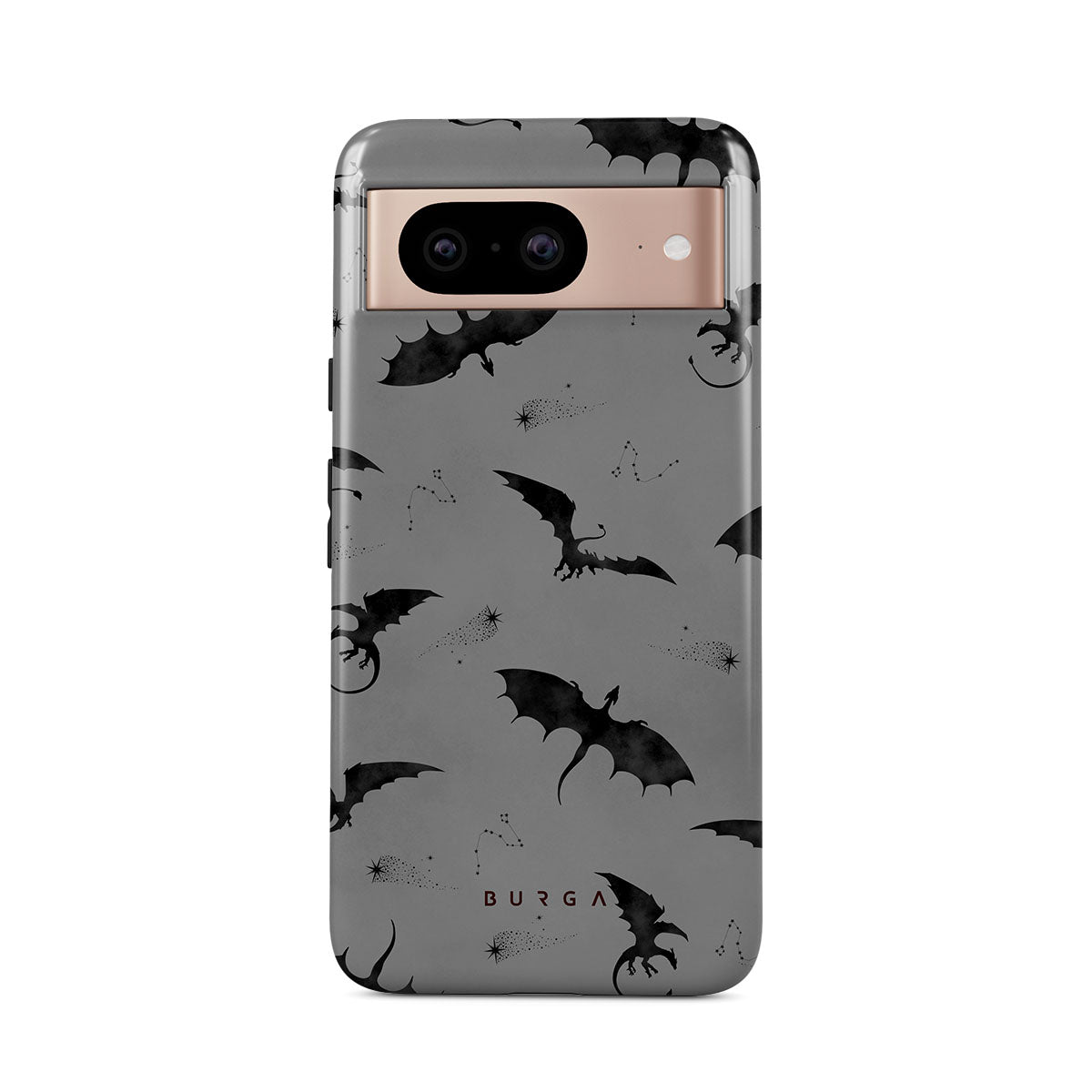 En este diseño: murciélagos, dragones, cielo gris, cielos nocturnos, criaturas siniestras.