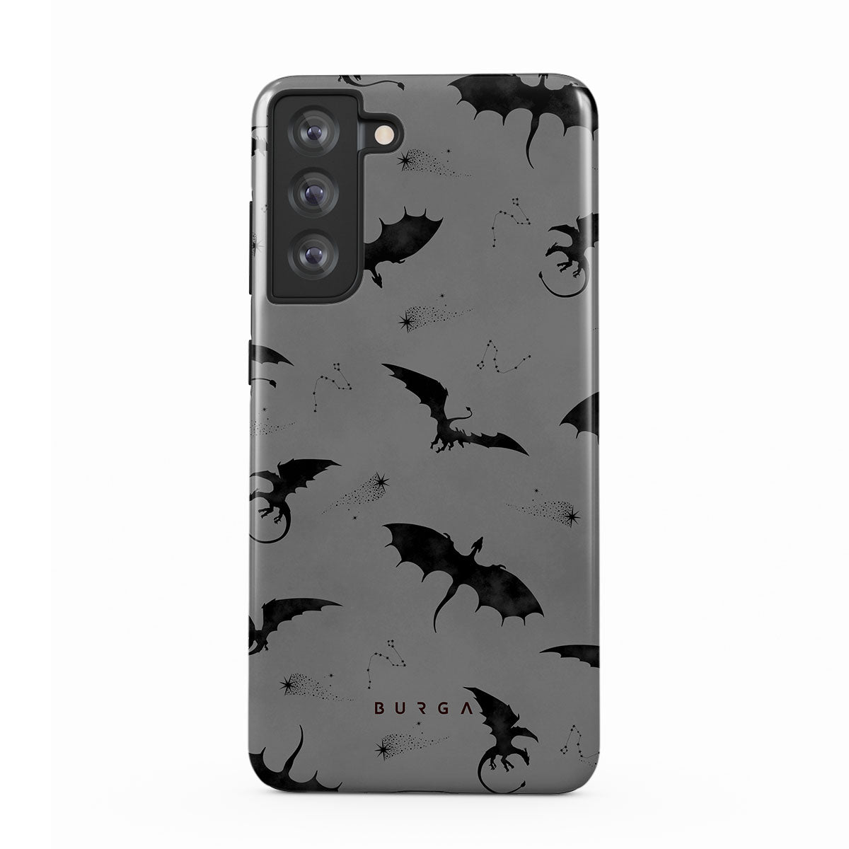 En este diseño: murciélagos, dragones, cielo gris, cielos nocturnos, criaturas siniestras.