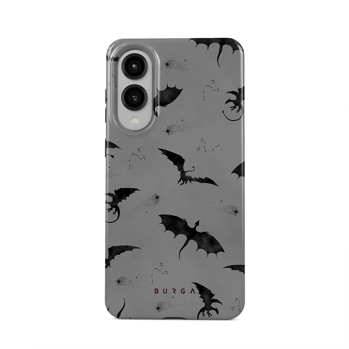 En este diseño: murciélagos, dragones, cielo gris, cielos nocturnos, criaturas siniestras.