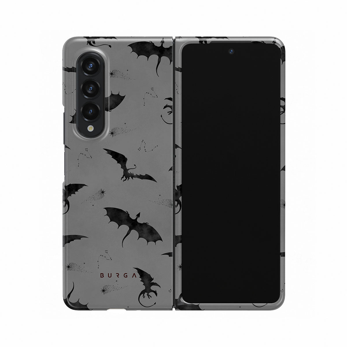 En este diseño: murciélagos, dragones, cielo gris, cielos nocturnos, criaturas siniestras.
