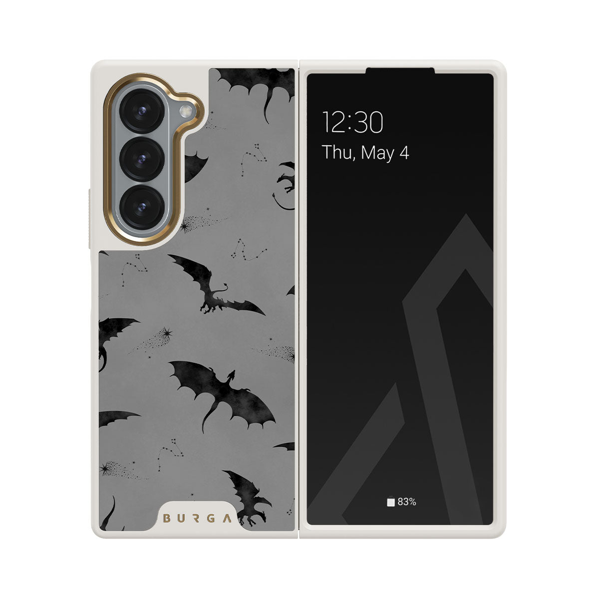 En este diseño: murciélagos, dragones, cielo gris, cielos nocturnos, criaturas siniestras.