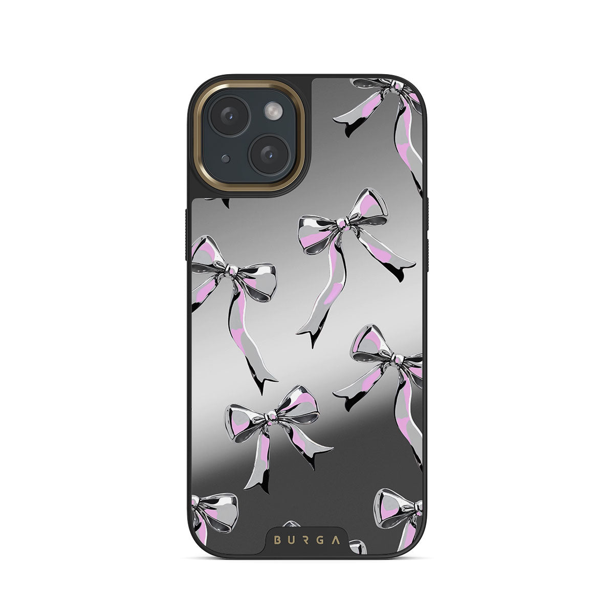 En este diseño: lazos rosas, cintas, colores pastel, detalles femeninos, espejo