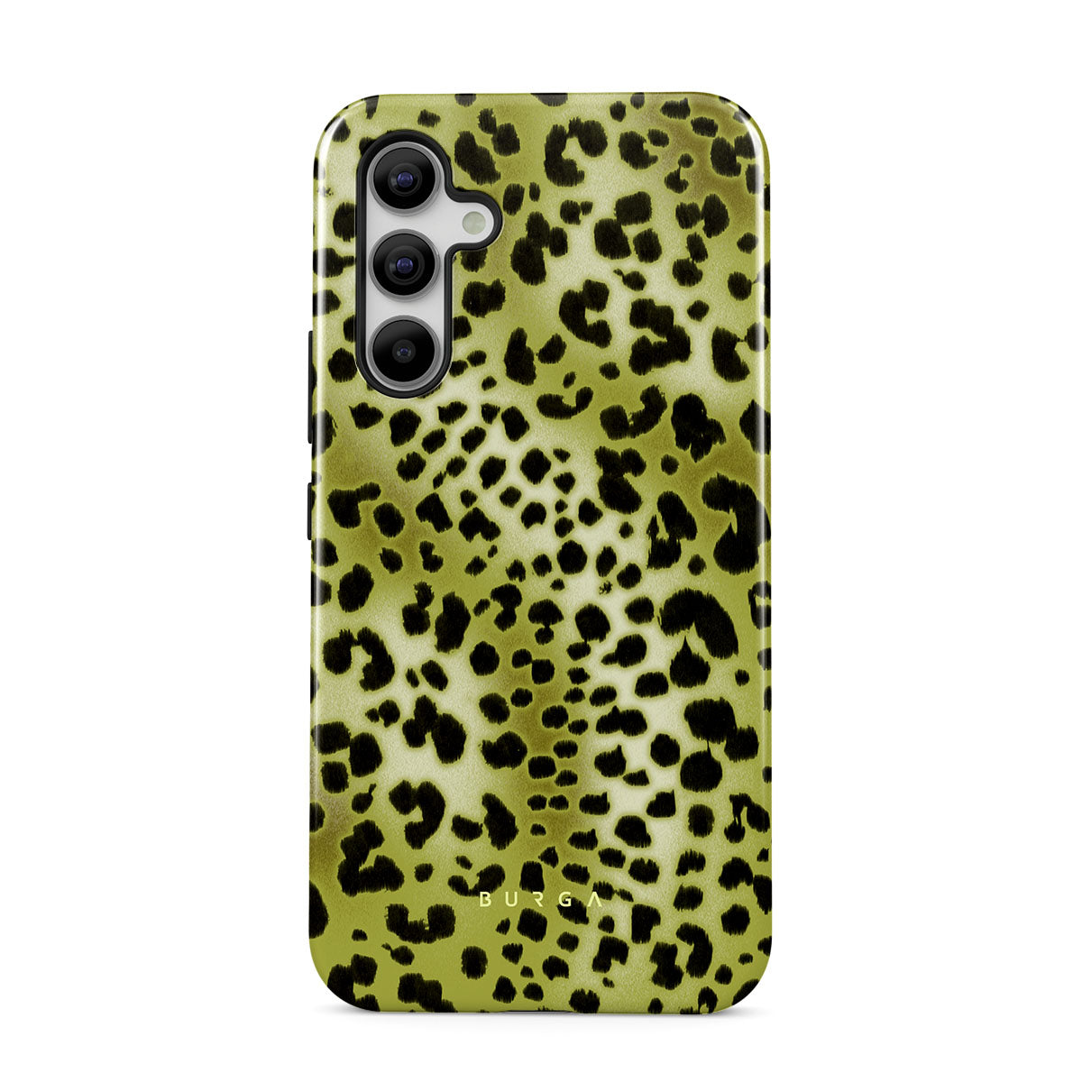 En este diseño: estampado de leopardo, manchas, verde oliva, estampado animal.