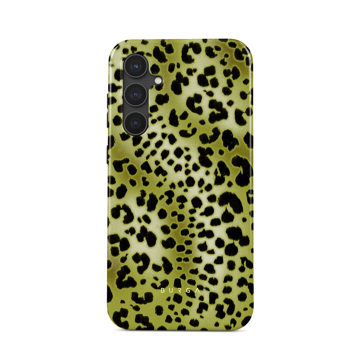 En este diseño: estampado de leopardo, manchas, verde oliva, estampado animal.