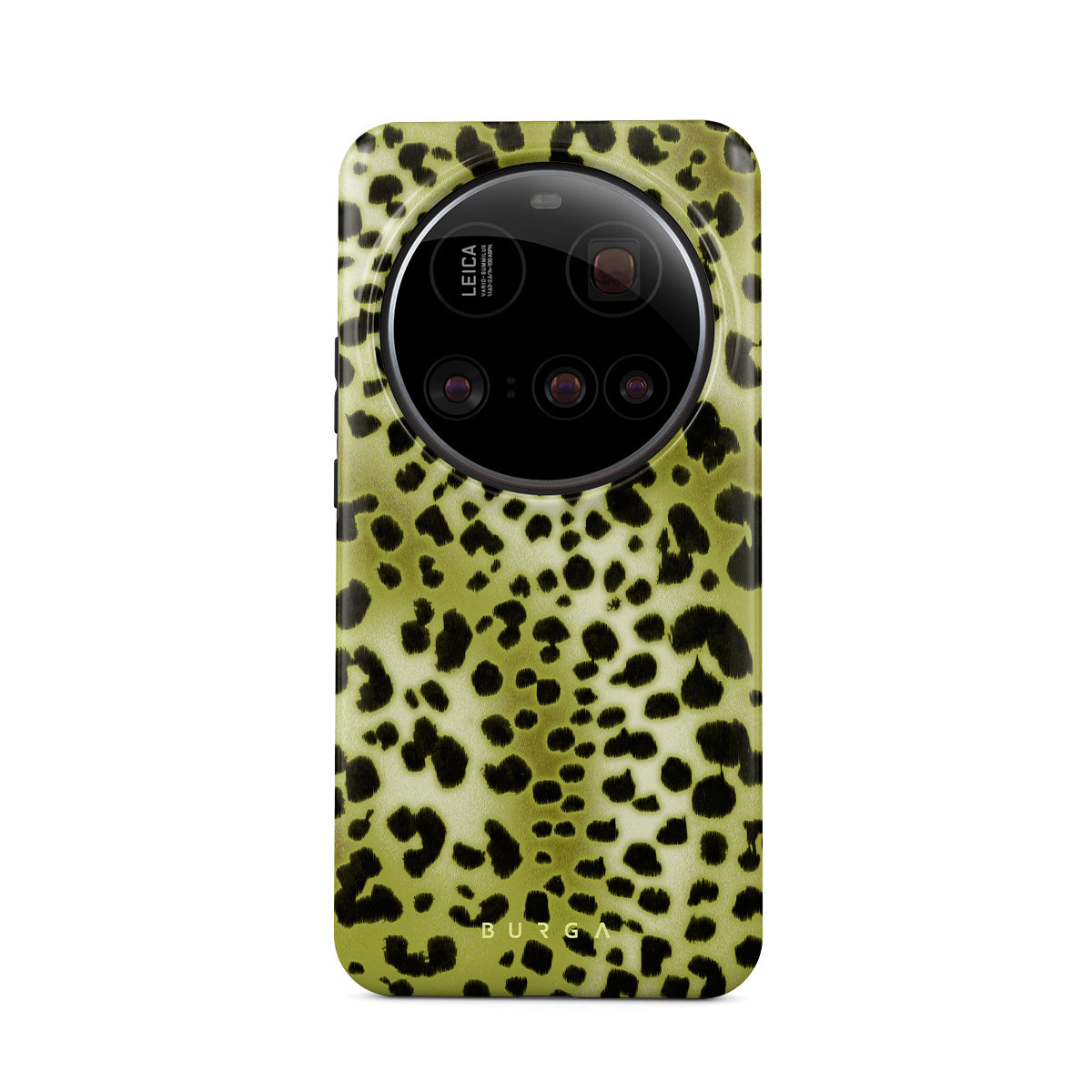 En este diseño: estampado de leopardo, manchas, verde oliva, estampado animal.