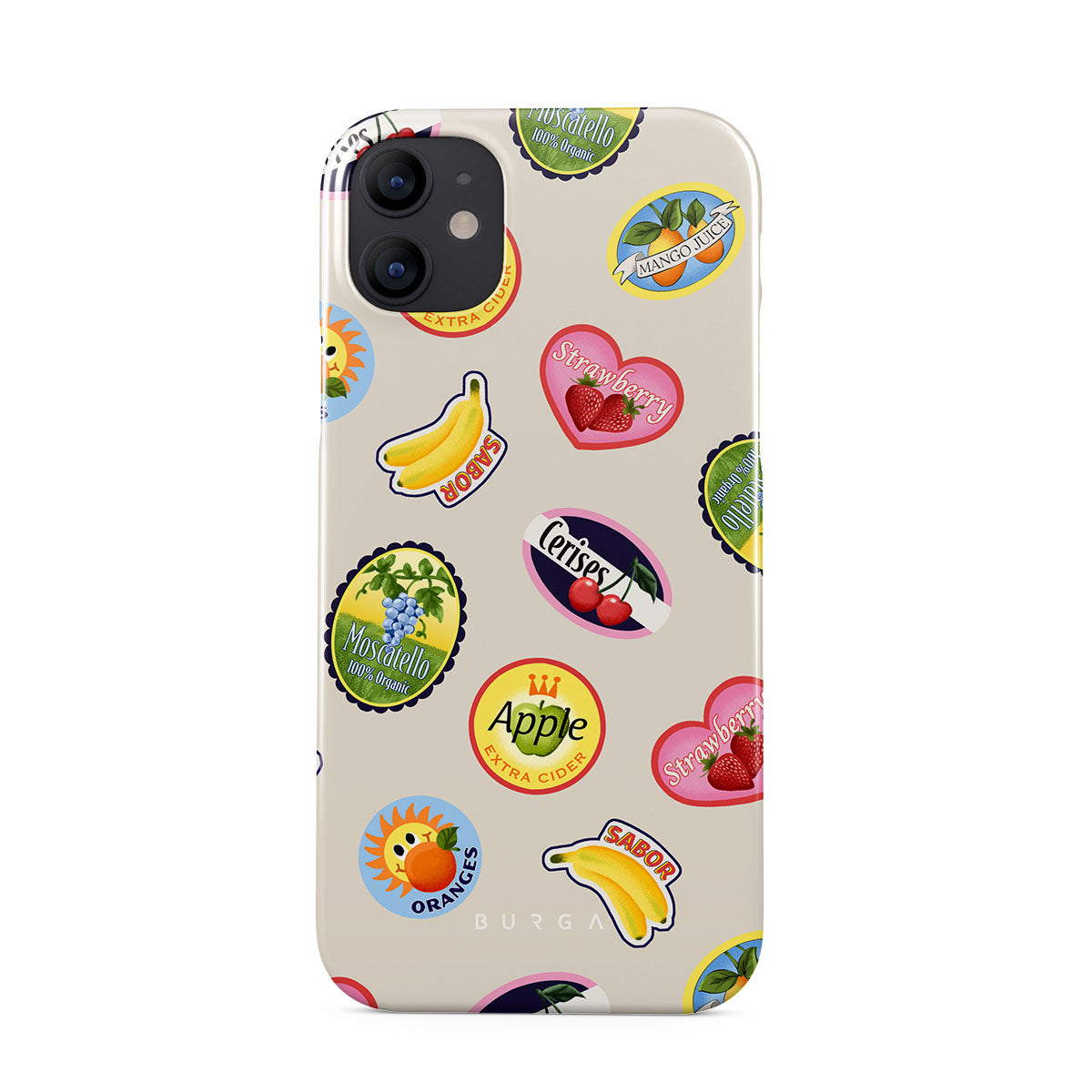 En este diseño: Plátanos, sellos, cerezas, manzanas, naranjas, fresas, colores brillantes, acentos cítricos, motivos frutales, patrones tropicales.