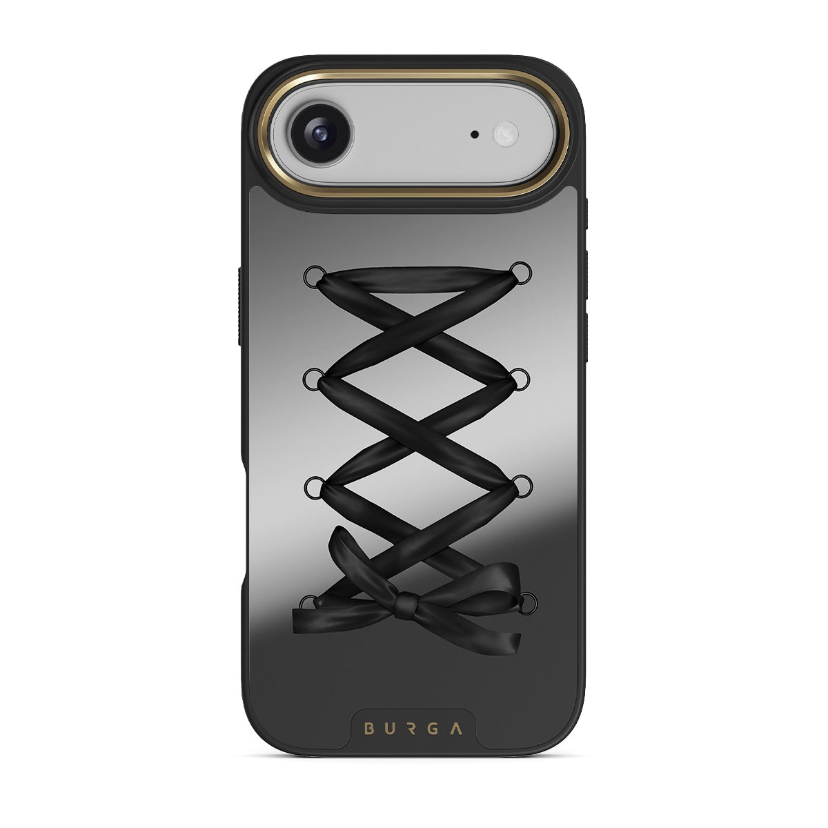 En este diseño: lazo negro, patrón entrecruzado y acabado de espejo.