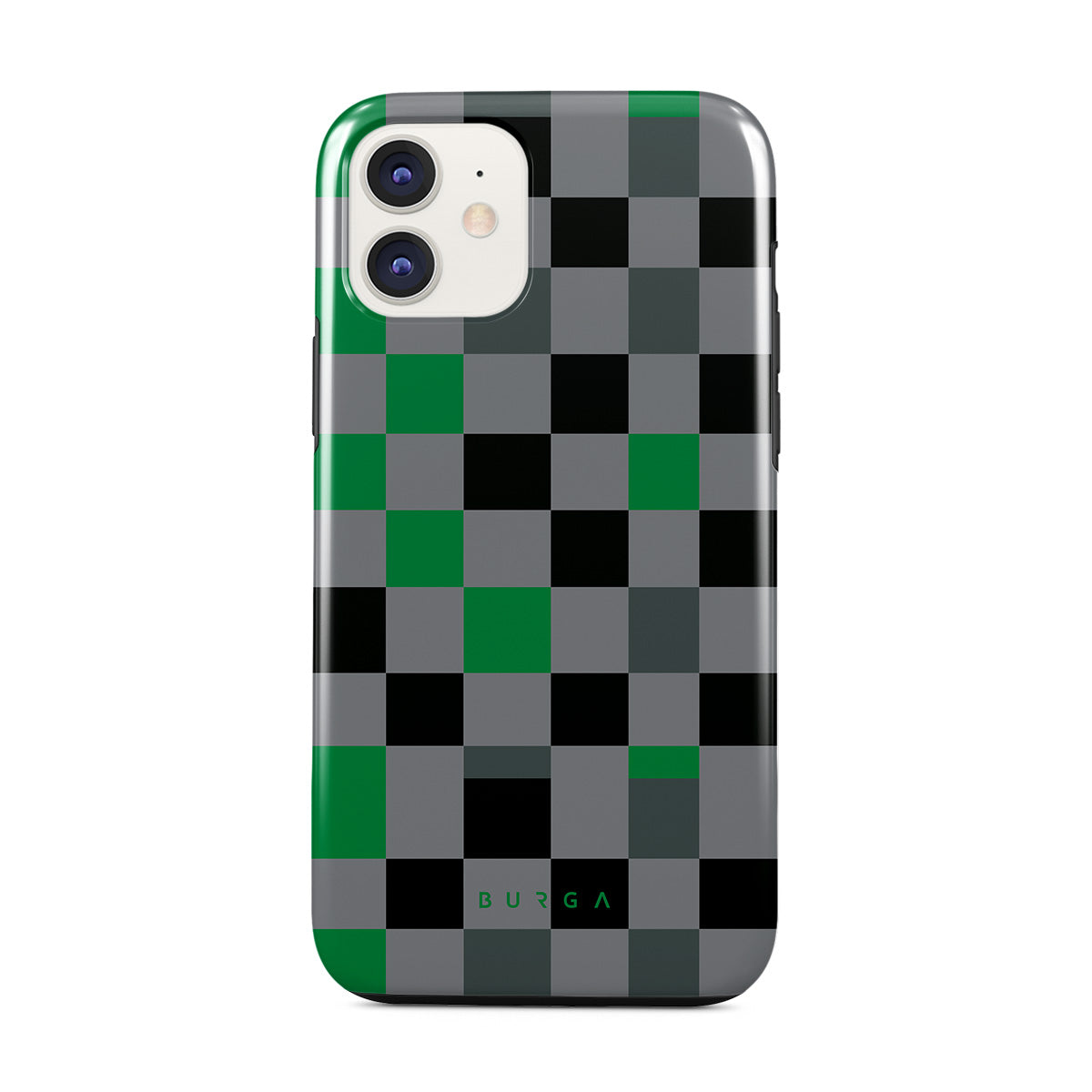 En este diseño: patrón de cuadros, verde, gris y negro y geométrico