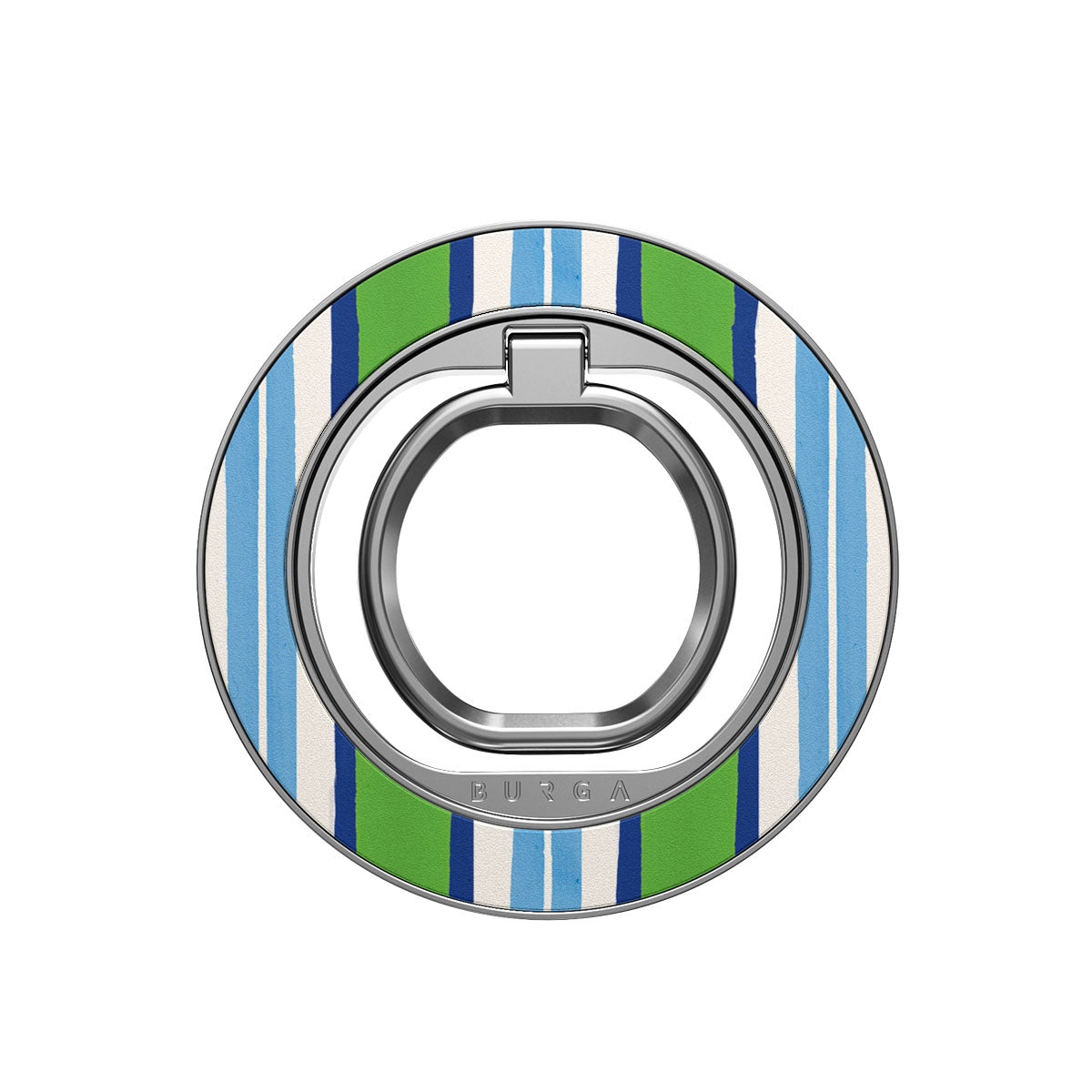 Nuestro anillo magnético se acopla al móvil con un clic muy agradable y sin necesidad de adhesivos. Úsalo para hacer scrolling con una sola mano, como soporte para ver contenido o, sencillamente, para presumir de funda BURGA a conjunto.