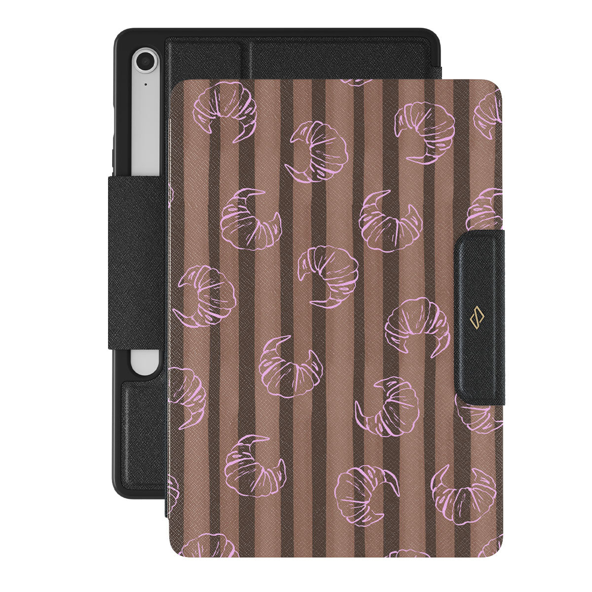 En este diseño: rayas verticales, rayas marrón y beis, cruasanes