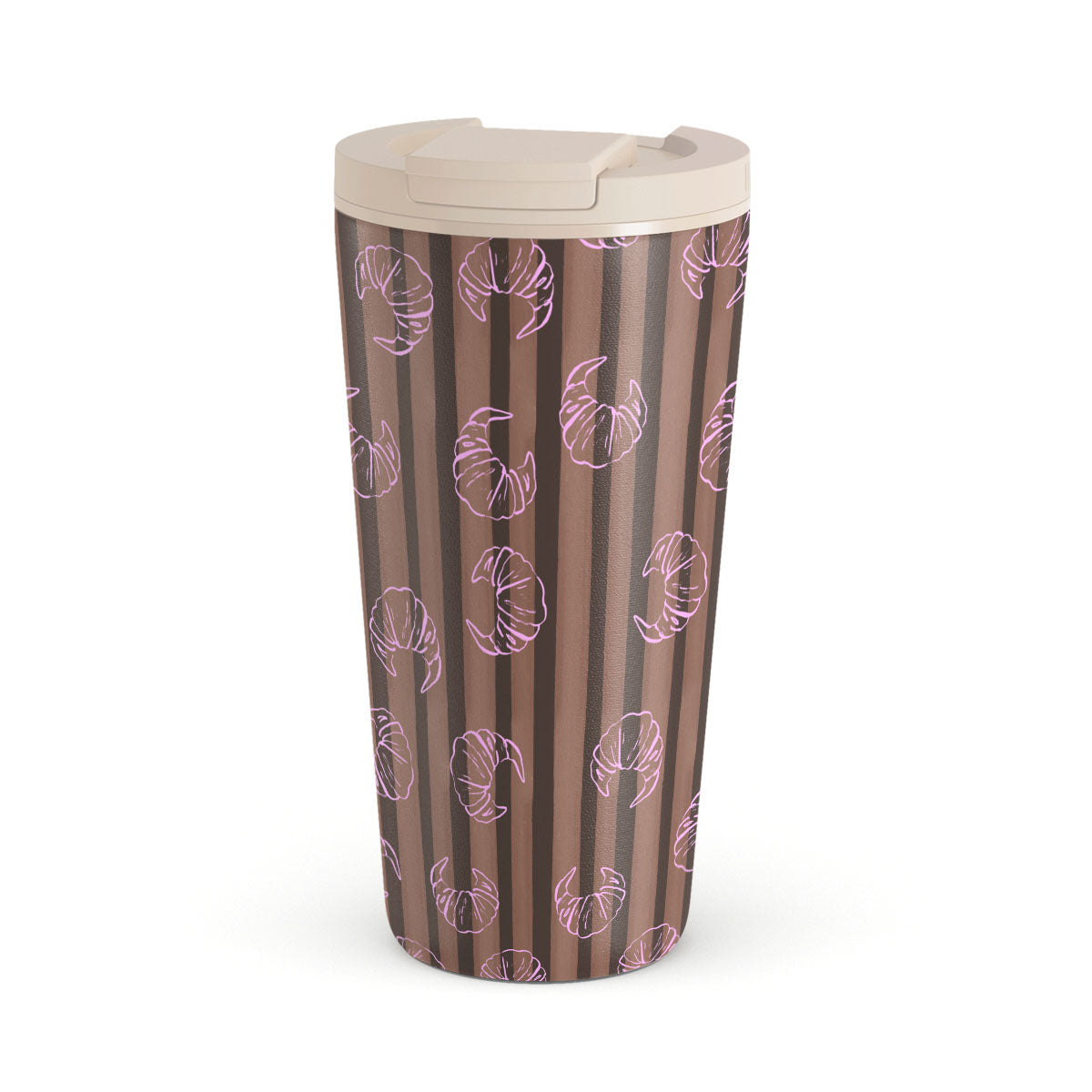 En este diseño: rayas verticales, rayas marrón y beis, cruasanes