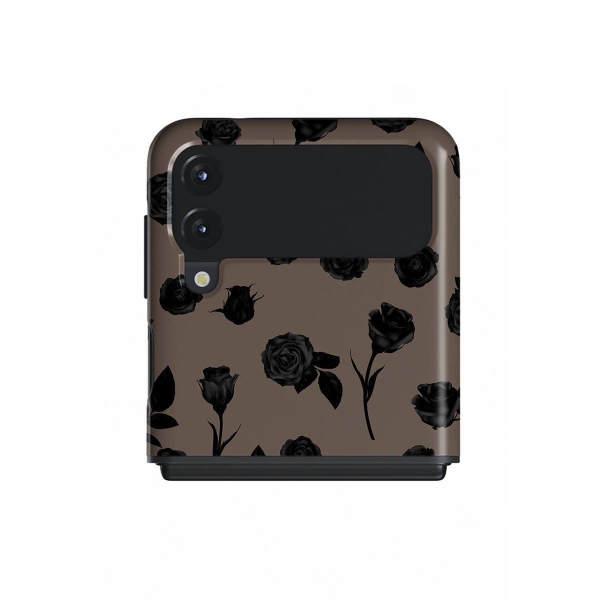En este diseño: rosas negras, tonos terrosos, detalles florales y flores oscuras.
