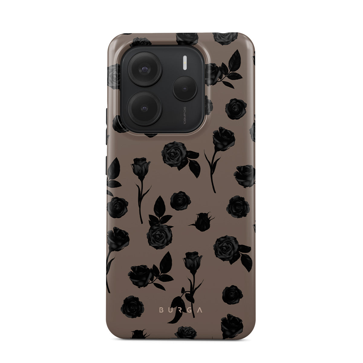 En este diseño: rosas negras, tonos terrosos, detalles florales y flores oscuras.