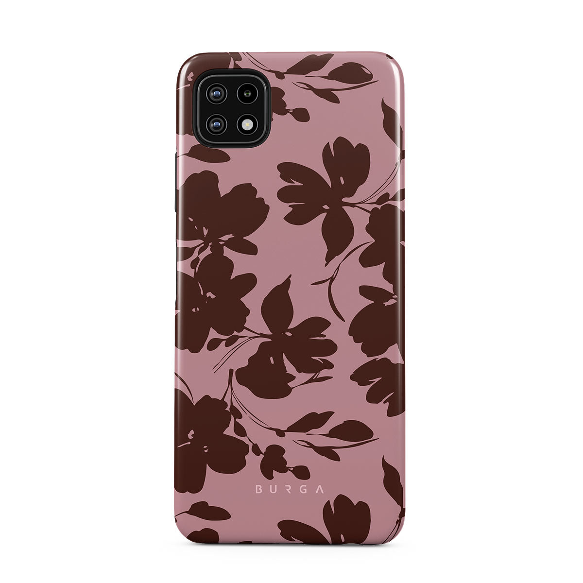 En este diseño: flores marrones abstractas, fondo rosa