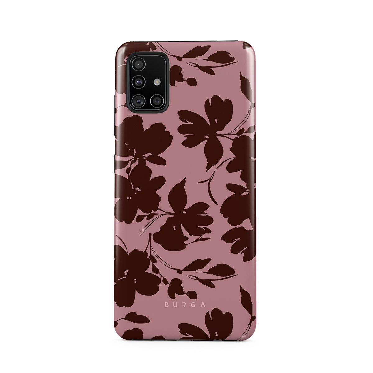 En este diseño: flores marrones abstractas, fondo rosa