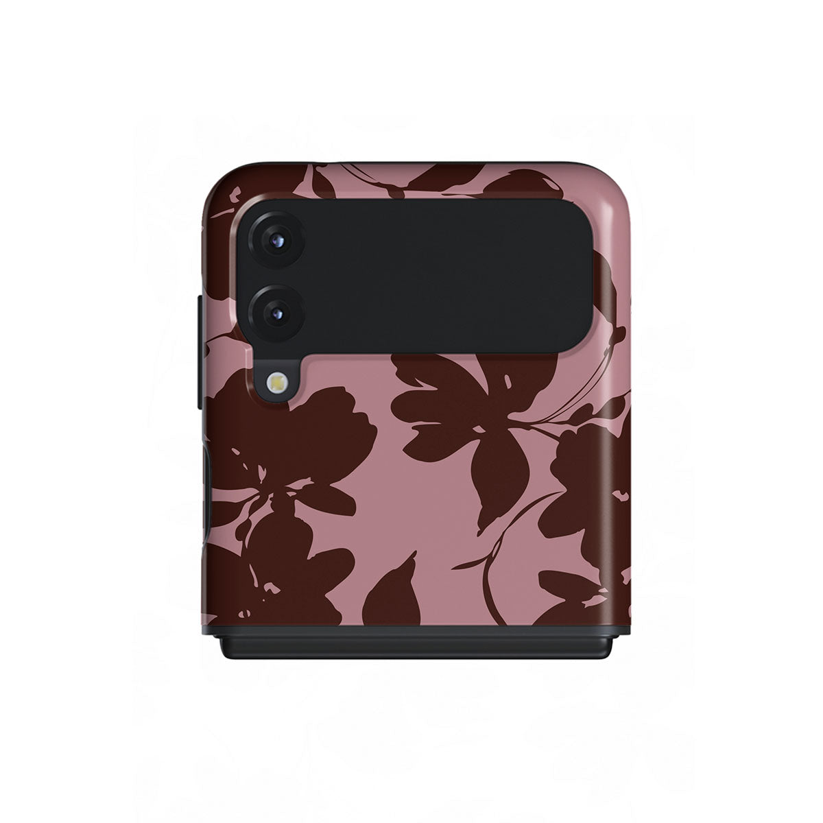 En este diseño: flores marrones abstractas, fondo rosa