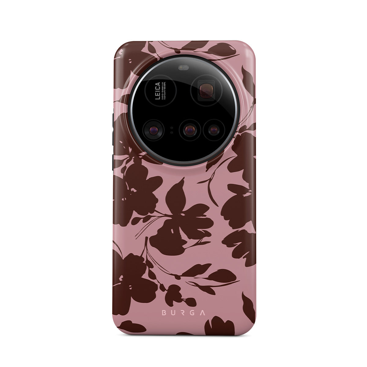 En este diseño: flores marrones abstractas, fondo rosa