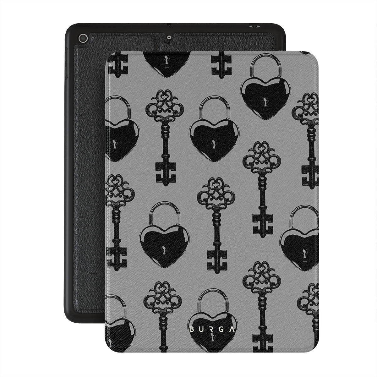 En este diseño: cerraduras ornamentadas, llaves vintage y detalles en negro.