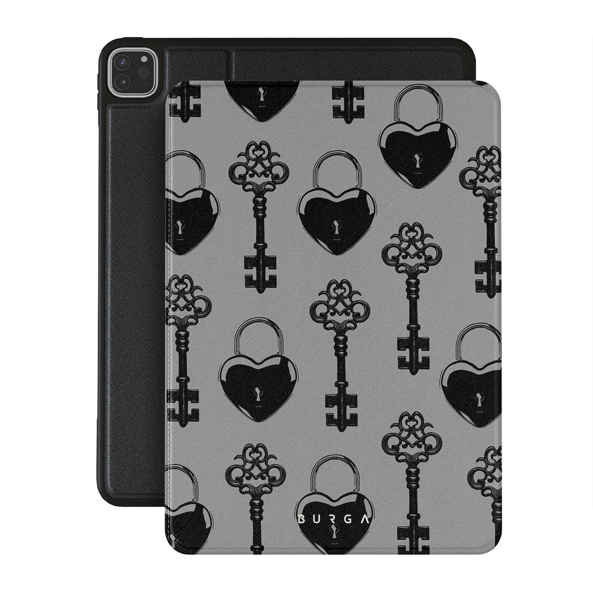 En este diseño: cerraduras ornamentadas, llaves vintage y detalles en negro.