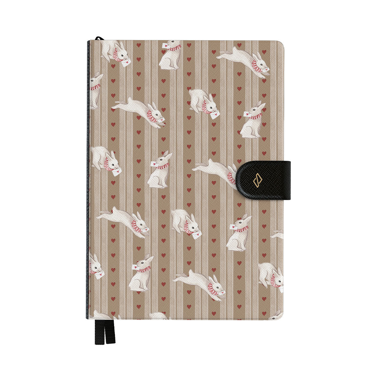 En este diseño: conejos blancos, corazones, amor, cartas, rayas vintage
