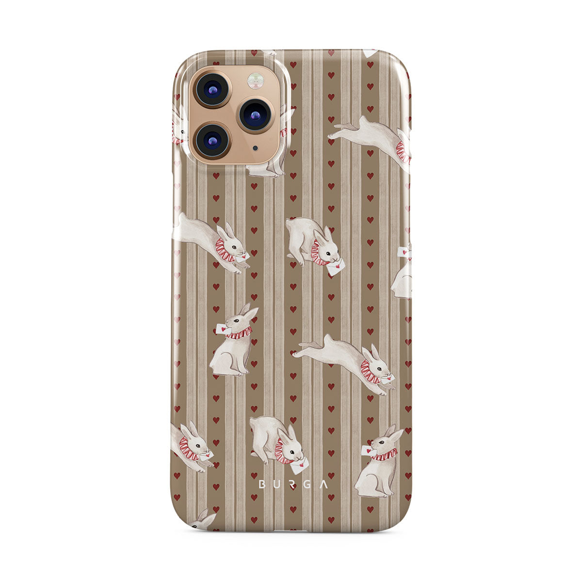 En este diseño: conejos blancos, corazones, amor, cartas, rayas vintage