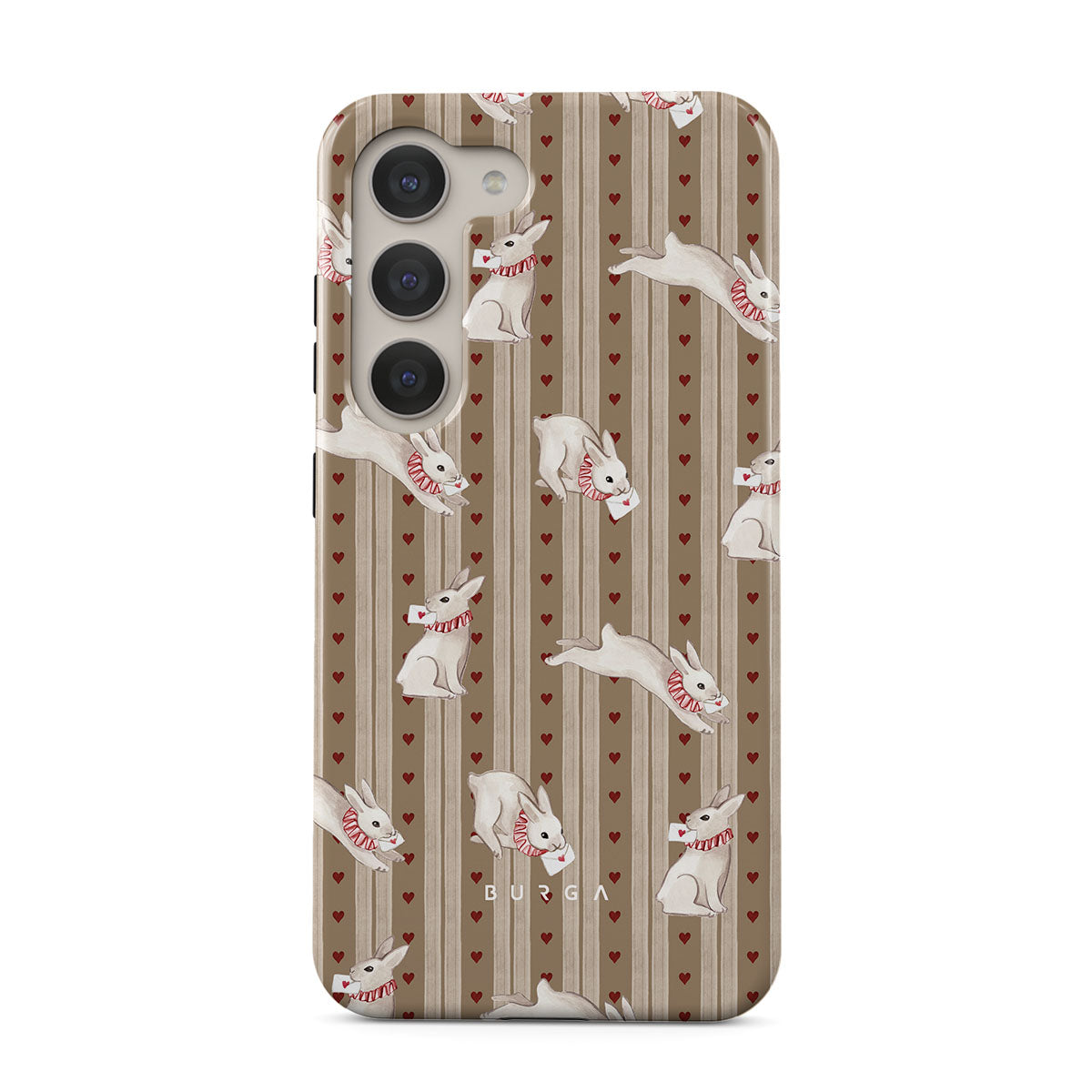 En este diseño: conejos blancos, corazones, amor, cartas, rayas vintage