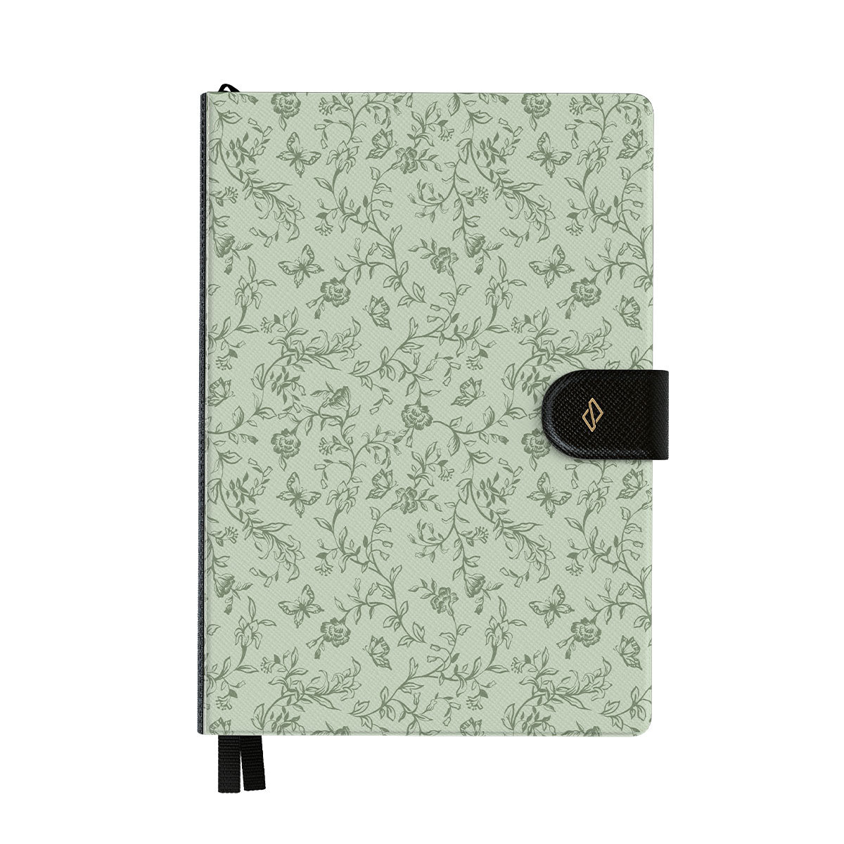 Esta agenda, revestida en una elegante piel saffiano vegana y asegurada con un bonito cierre magnético, está lista para resistir a esos derrames de café y pequeños accidentes del día a día.