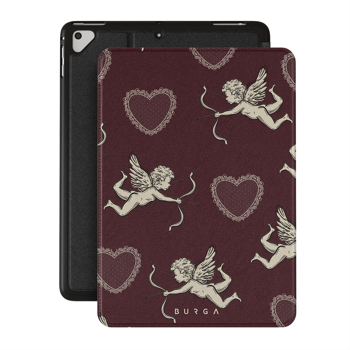 En este diseño: ángeles, Cupido, corazones rojos y estampado romántico.