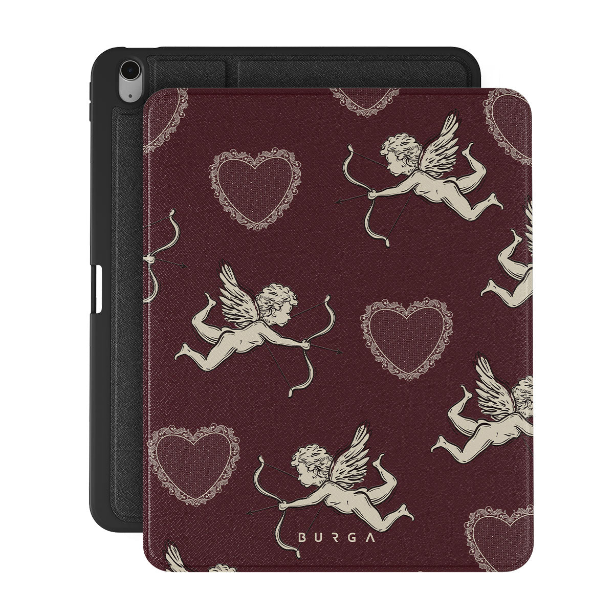 En este diseño: ángeles, Cupido, corazones rojos y estampado romántico.