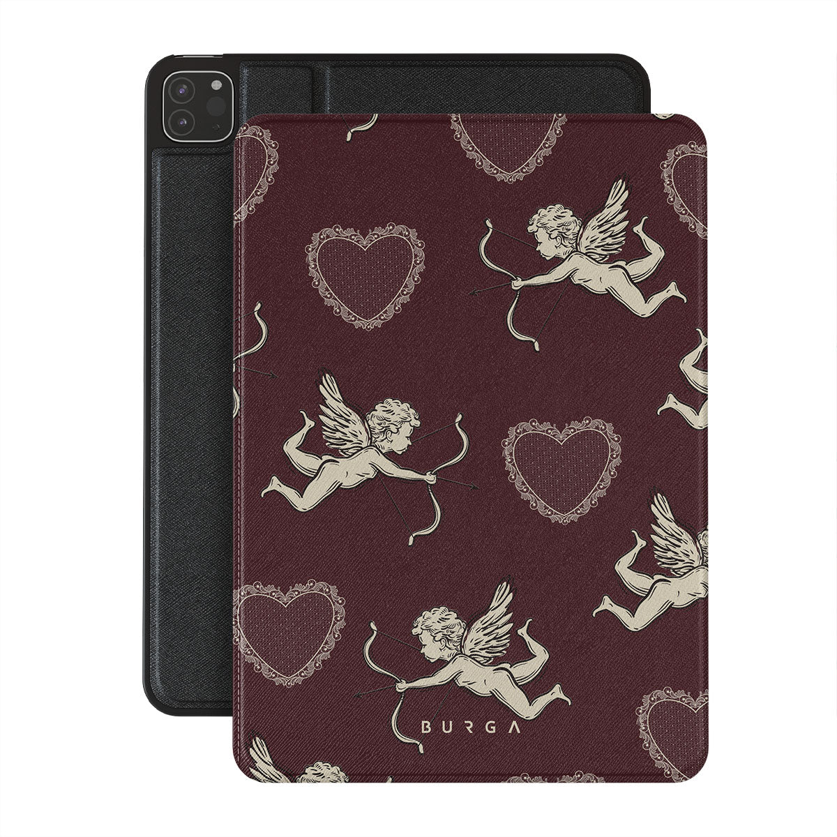 En este diseño: ángeles, Cupido, corazones rojos y estampado romántico.