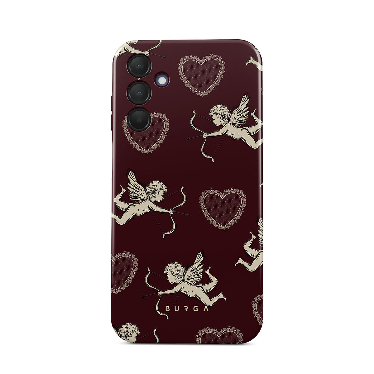 En este diseño: ángeles, Cupido, corazones rojos y estampado romántico.