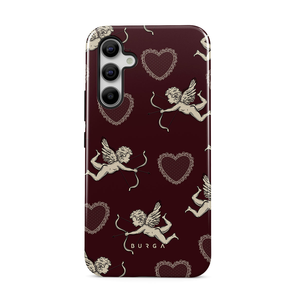 En este diseño: ángeles, Cupido, corazones rojos y estampado romántico.