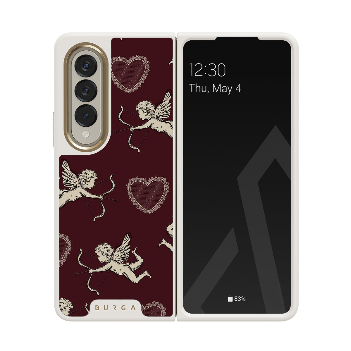 En este diseño: ángeles, Cupido, corazones rojos y estampado romántico.