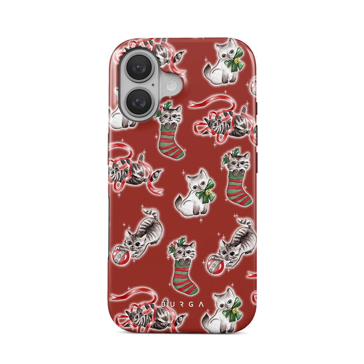 En este diseño: gatos, medias navideñas, gatitos, patrón rojo y verde, gatos juguetones, adornos navideños