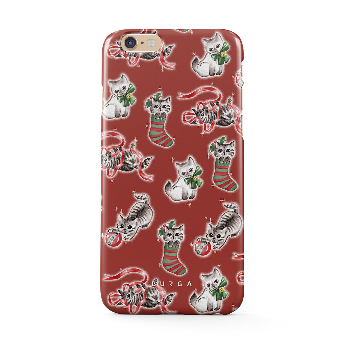 En este diseño: gatos, medias navideñas, gatitos, patrón rojo y verde, gatos juguetones, adornos navideños