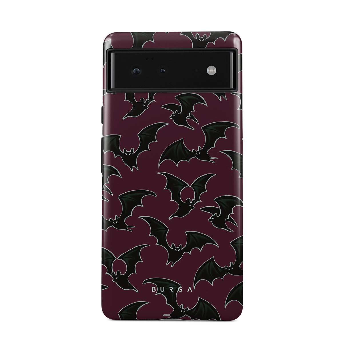 En este diseño: tema de Halloween, murciélagos, fondo burdeos