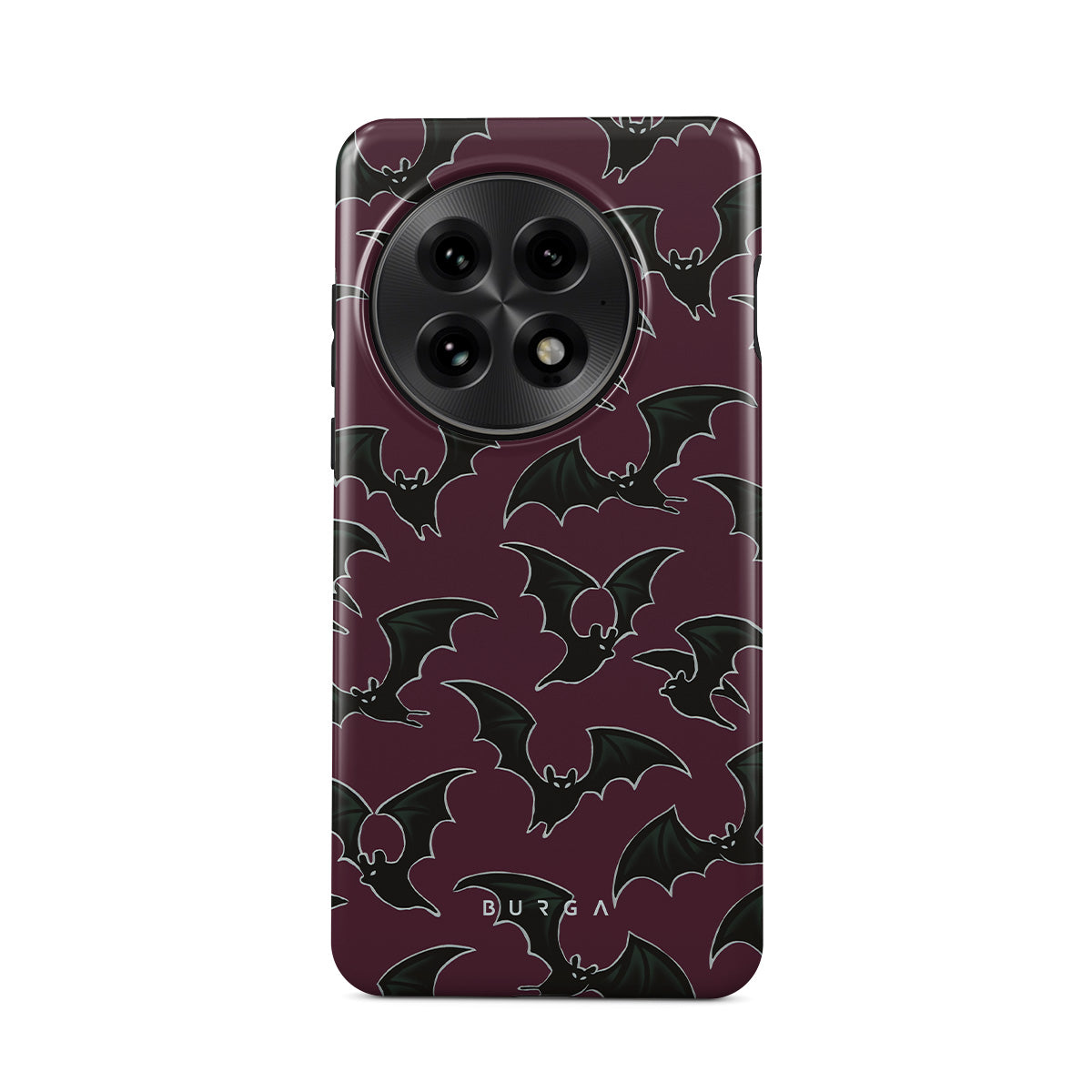 En este diseño: tema de Halloween, murciélagos, fondo burdeos
