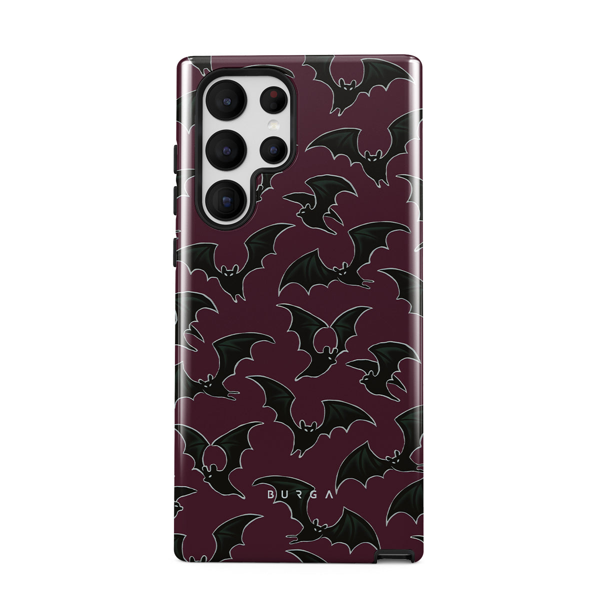En este diseño: tema de Halloween, murciélagos, fondo burdeos