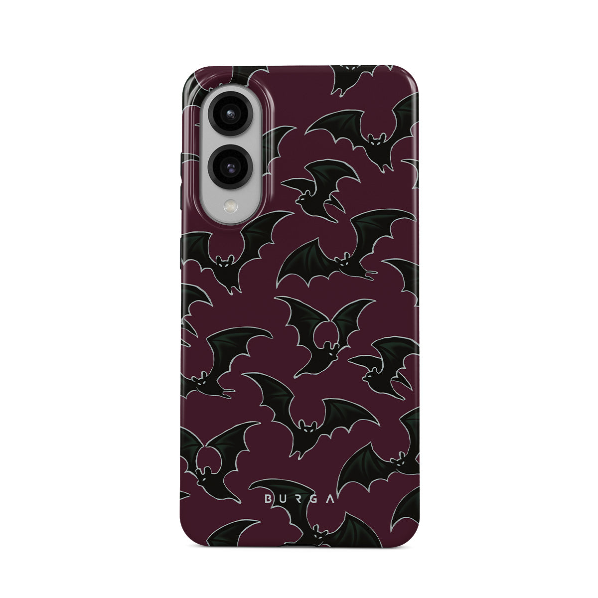En este diseño: tema de Halloween, murciélagos, fondo burdeos