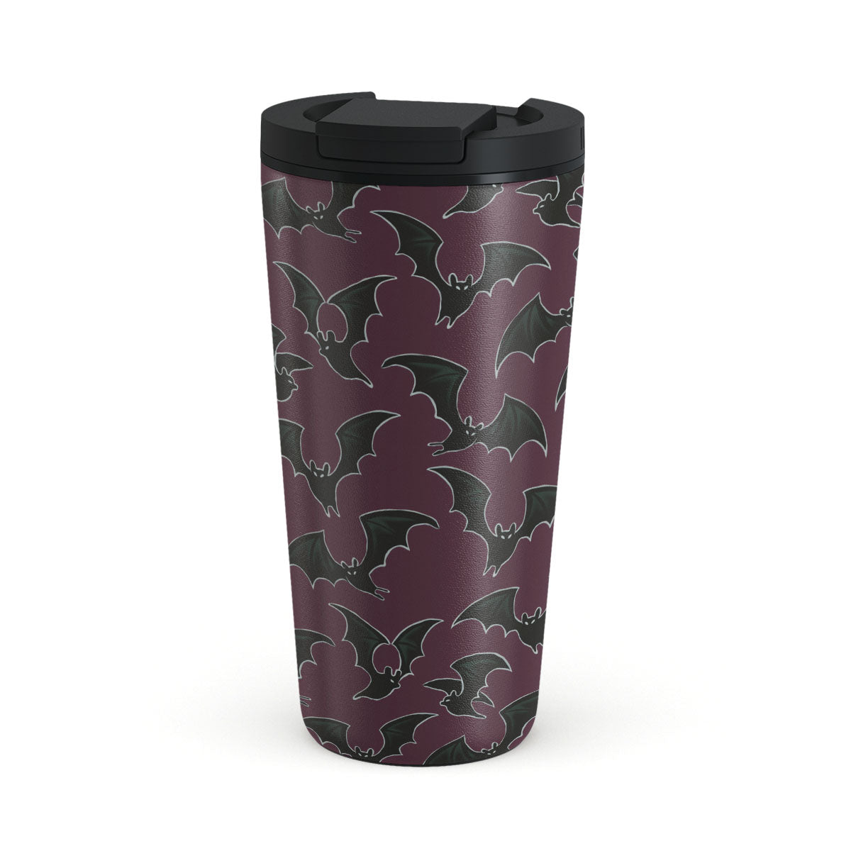 En este diseño: tema de Halloween, murciélagos, fondo burdeos